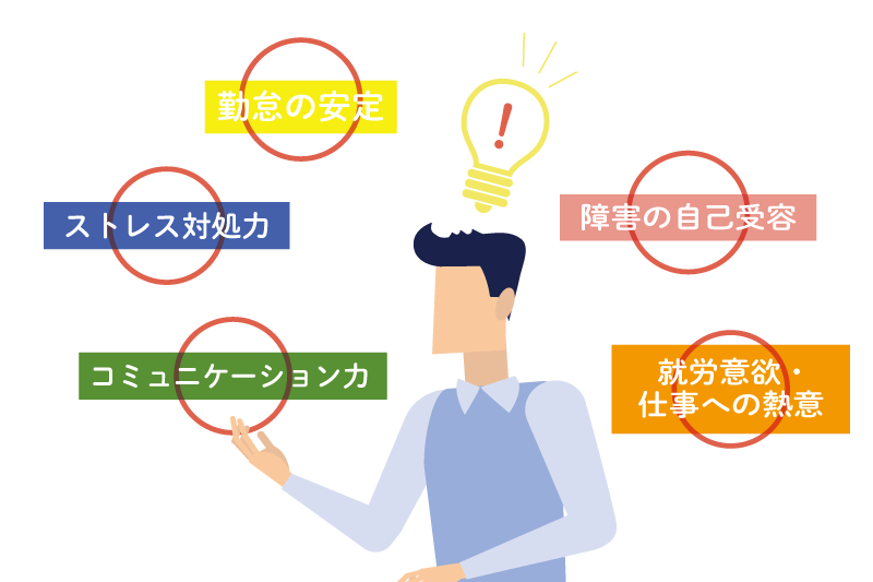 働くうえでの「障害特性による苦手」を見極め、セルフケアを実践するための環境を用意しています。